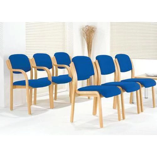 Beech finished, polished wood frame meeting room chairs.